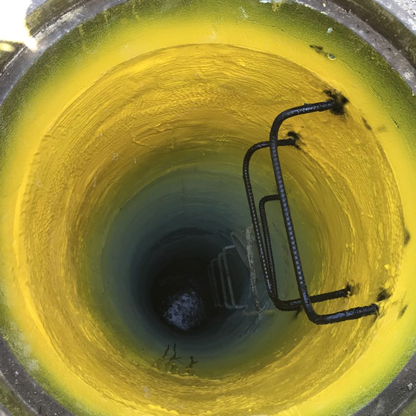 Le regard en béton à réhabiliter, de 900 mm (36 po) de diamètre, comportait plusieurs défaillances : absence de cunette et d’écoulement au fond, des parois dégradées et fissurées, des joints d’étanchéité effrités et une nappe phréatique haute amplifiait tous les problèmes.